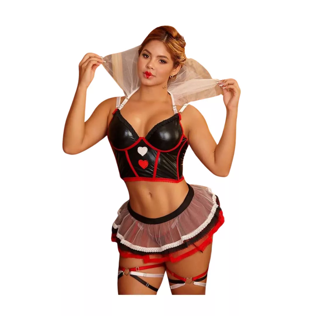 🎴👑 Domina la baraja este Halloween con nuestro Disfraz Sexy Reina de Corazones. Inspirado en Alicia en el País de las Maravillas, combina sensualidad y poder con detalles rojos vibrantes y un diseño que roba miradas. Ideal para fiestas, cosplay adulto y noches de fantasía. ¿Lista para reinar? 💋