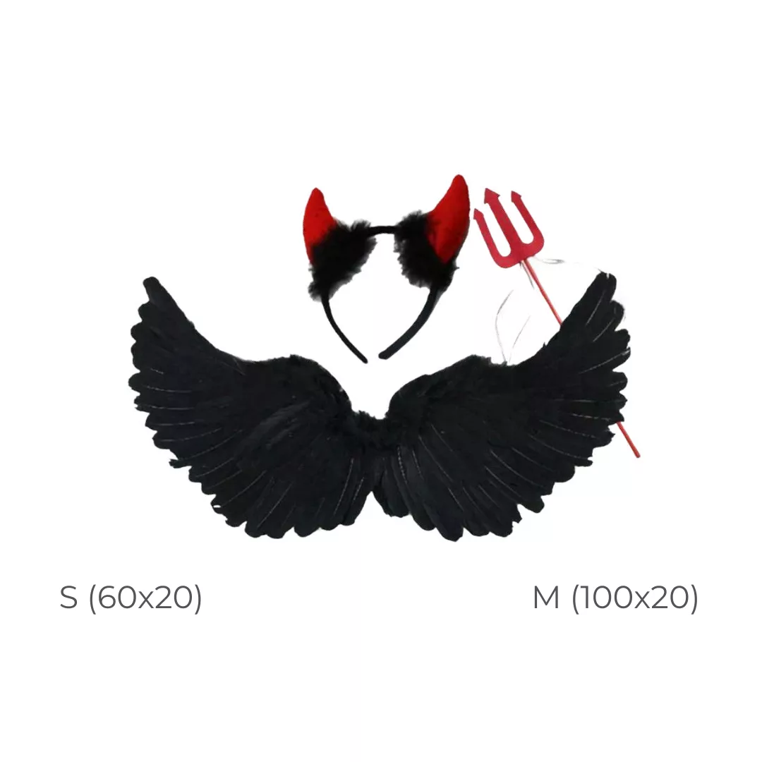 Set Accesorios Diabla / Ángel Oscuro (Cachos, Tridente, Alas) (2 Tamaños)